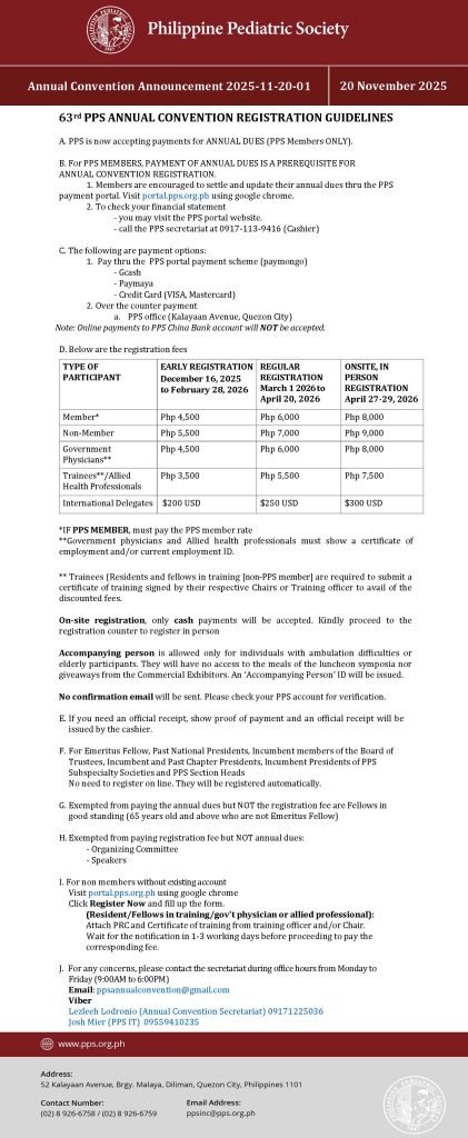 - The Philippine Pediatric Society will never request payments in foreign currency or sensitive information via email without prior official notice through verified channels.